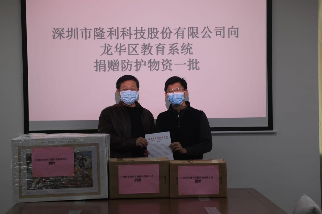 2020年217日,隆利科技向龍華區教育局捐贈防護物資一批,該批物資是由隆利科技吳總送達區教育局,并收到了龍華區教育局的感謝信。在疫情防控的特殊時(shí)期,隆利科技希望能送上一份溫暖,與龍華政府攜手共進(jìn),共克時(shí)艱。